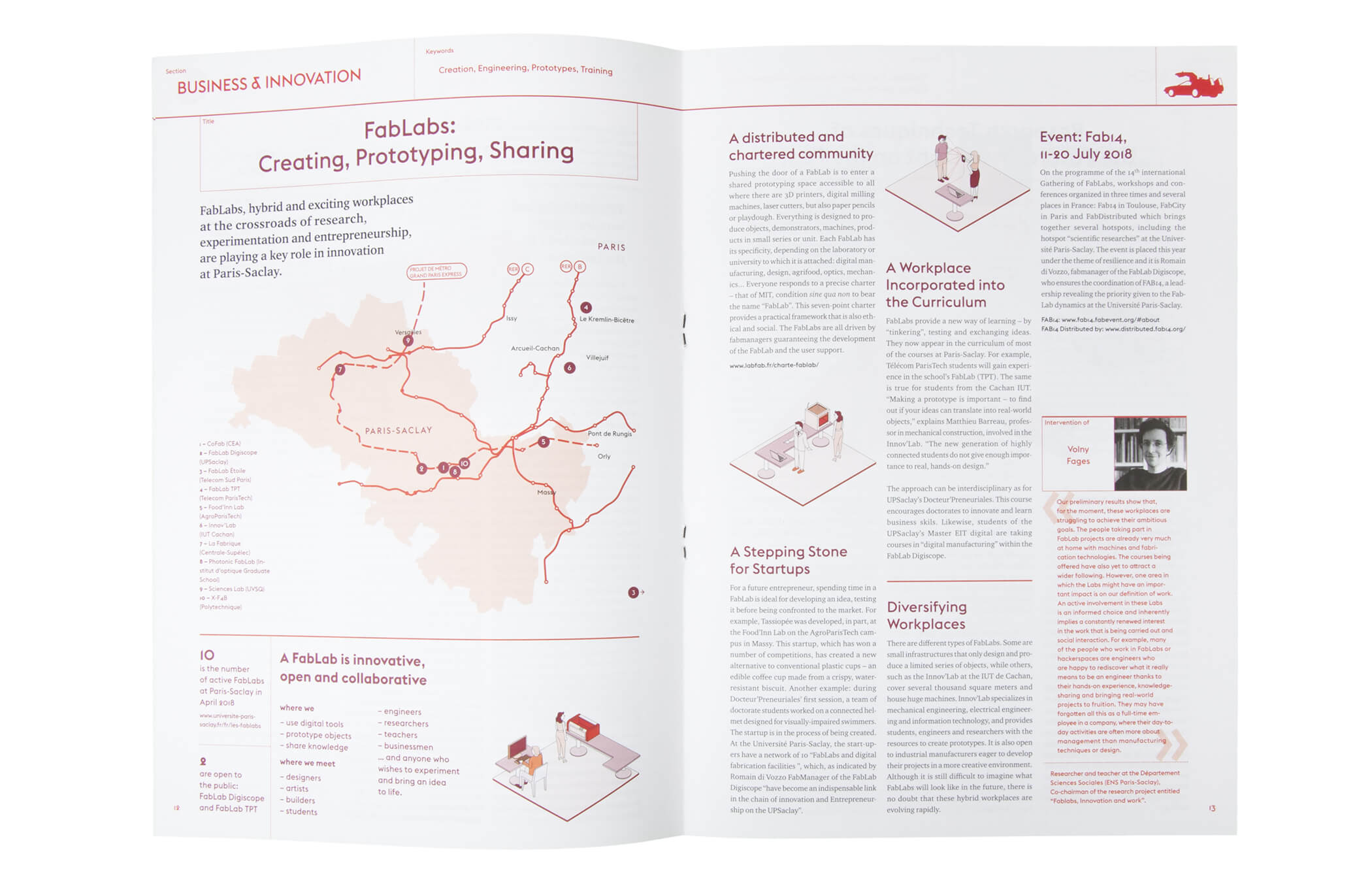 Carte illustrée du réseau de métro Grand Paris Express. Interprétation des projet architecturaux des 68 gares du réseau. 700 × 1 100 cm. Architecte de la gare : Miralles Tagliabue EMBT / Bordas + Peiro